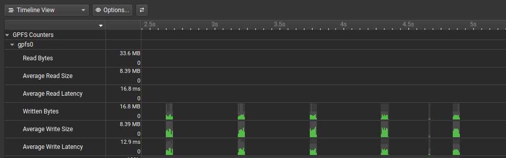 This plugin collects GPFS (IBM General Parallel File System) client volumes metrics and displays them over the Nsight Systems timeline view.