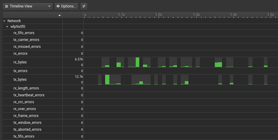 A sample plugin, which displays the network counters of a given Ethernet interface. Its aim is to provide a simple example of an Nsight Systems plugin. The plugin source code can be found under SamplePlugins/NetworkUsage.
