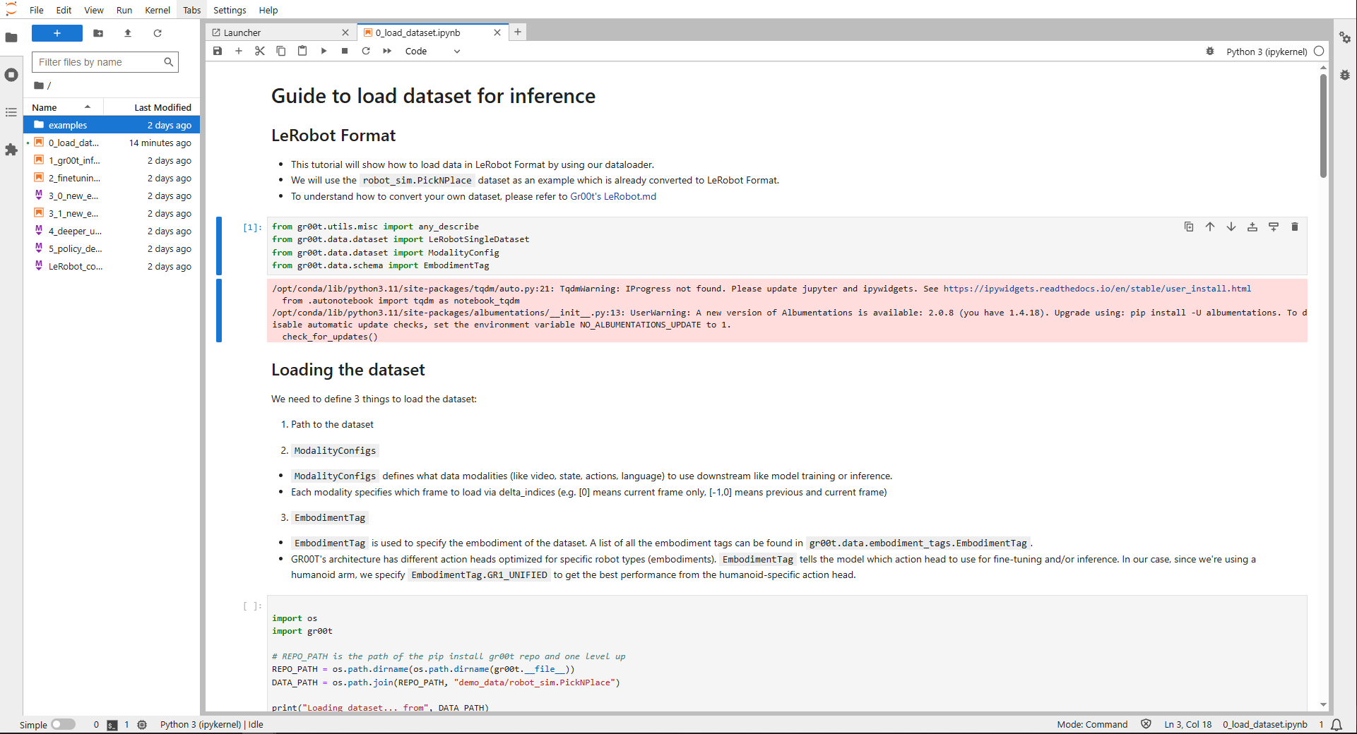 This workflow demonstrates how to perform inference and fine-tuning using Isaac Gr00t through a Jupyter notebook.