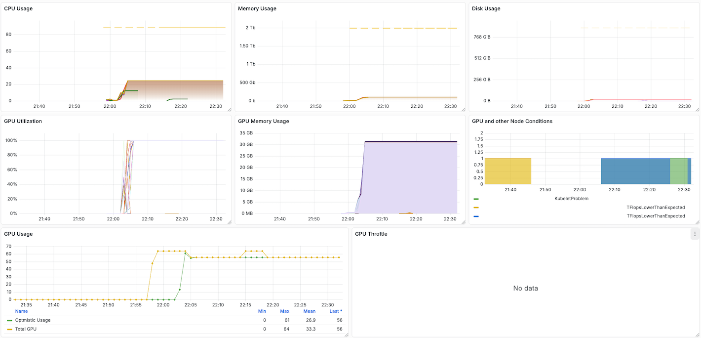 Resource usage dashboard will show you how your usage on CPU, Memory and GPU during the workflow execution.
