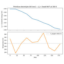 04 — MACE NVT: Using a real MACE MLIP for NVT dynamics; automatic neighbor list wiring via ModelCard; LJ fallback for CI.