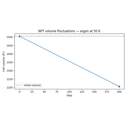 03 — NPT MD: Pressure-controlled dynamics with the MTK barostat, LJ stress computation, cell fluctuation monitoring.